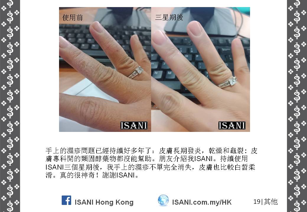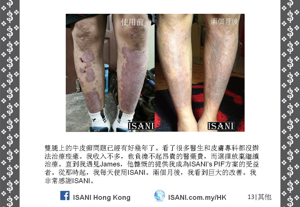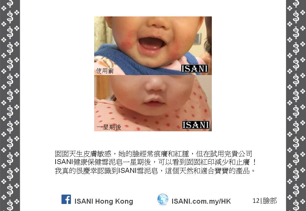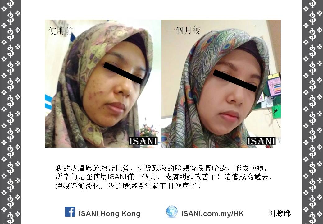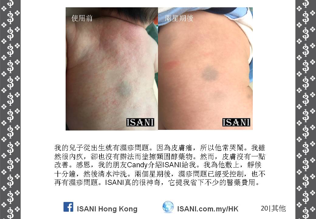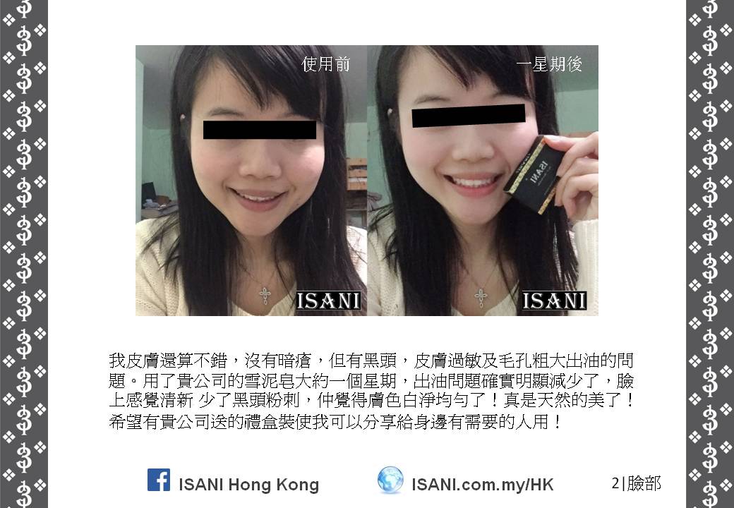 ISANI是以獨特的配方來取代皮膚和個人保養品。它適合所有皮膚性質和各年齡階層,也適於使用在臉部、頭髮、全身肌膚甚至皮膚炎,並且在一至三分鐘就可以觀察到它的效力。就是這麼簡單容易。