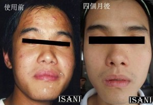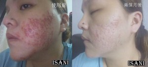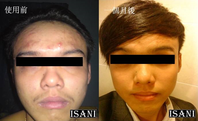 我以前的女友都不敢親我,因為我的臉頰嚴重地長滿暗瘡。使用ISANI 四個月後,暗瘡全都淡化了。我的臉現在看起來俊俏了,女友也更愛慕我。謝謝ISANI!