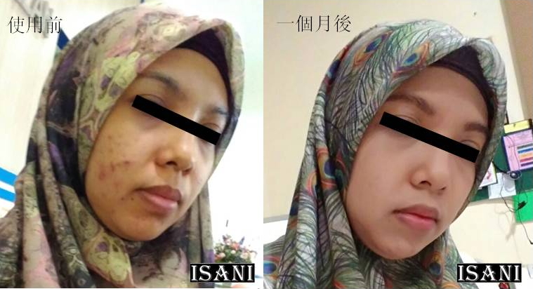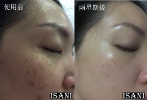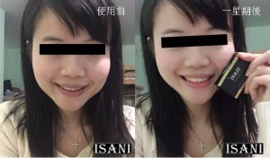 我的臉部長期面對黑頭,雀斑和紅疹的問題。臉部因此留下很多的疤痕。為了掩飾,我畫上濃濃的妝。在使用ISANI 長達七星期後,我發現臉上的黑頭和雀斑不但逐漸減少了。皮膚奇蹟般的清新柔滑,而不乾燥或也不脫皮。ISANI 真讓我吃驚,真的不敢相信單一產品能有如此的功效!