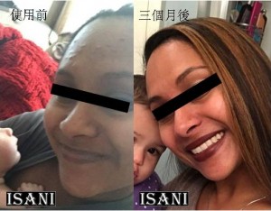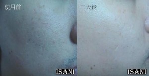 我的臉部膚色黯淡無光。但是在使用ISANI一週之後,肌膚不僅光滑有光澤,而且結實有彈性。臉部毛孔和眼袋已經消減,我現在可以不化妝也很有自信的出門了!感謝ISANI。