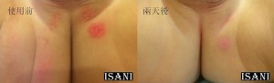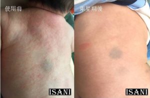 我的身體在游泳後開始長紅疹。出於好奇,我在長紅疹的皮膚上敷上ISANI。好神奇噢!紅疹在一天之內完全消失,而且沒有用到任何藥膏藥物。ISANI真的是健膚保健皂!