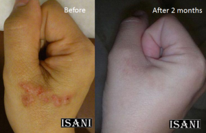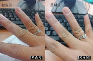 手上的濕疹問題已經持續好多年了:皮膚長期發炎,乾燥和龜裂: 皮膚專科開的類固醇藥物都沒能幫助。朋友介紹我ISANI。持續使用ISANI三個星期後,我手上的濕疹不單完全消失,皮膚也比較白皙柔滑。真的很神奇!謝謝ISANI。