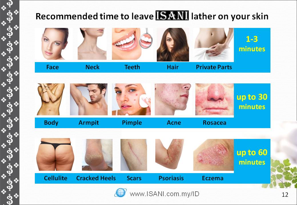 Recommended skin area and time to leave ISANI lather on your skin